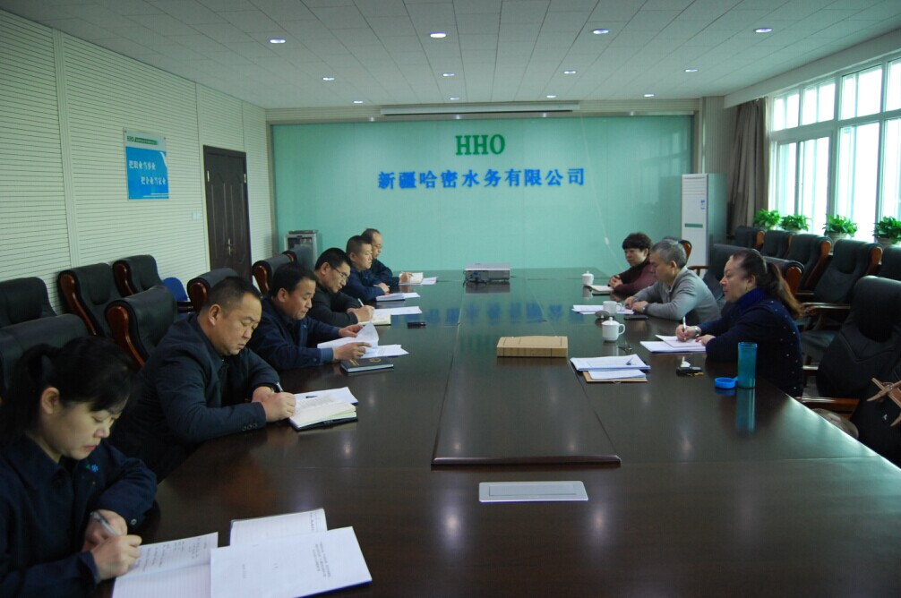 根據(jù)集團公司黨委《關(guān)于開好2014年度黨員領(lǐng)導(dǎo)干部民主生活會的通知》的工作要求,新疆哈密水務(wù)公司于2015年1月6日召開“嚴(yán)格黨內(nèi)生活,嚴(yán)守黨的紀(jì)律,深化作風(fēng)建設(shè),推動公司科學(xué)發(fā)展”主題民主生活會。公司班子成員參加會議。集團公司總經(jīng)濟師邱益軍、集團公司綜合管理部經(jīng)理茹仙古麗、集團公司人力資源部副經(jīng)理毛蜀玉到會參加并指導(dǎo)了此次民主生活會。