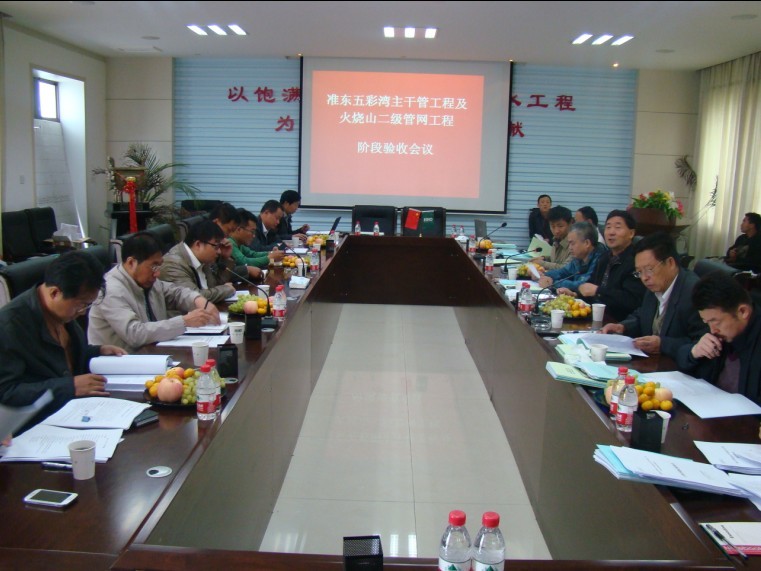 驗收工作組在對五彩灣主干管供水和火燒山二級供水項目建設(shè)現(xiàn)場進行視察后回到準東供水公司五彩灣基地,召開通水階段驗收工作會,會上各方專家提出寶貴的意見和建議,各項驗收內(nèi)容一致通過并宣布該次通水階段驗收圓滿成功。