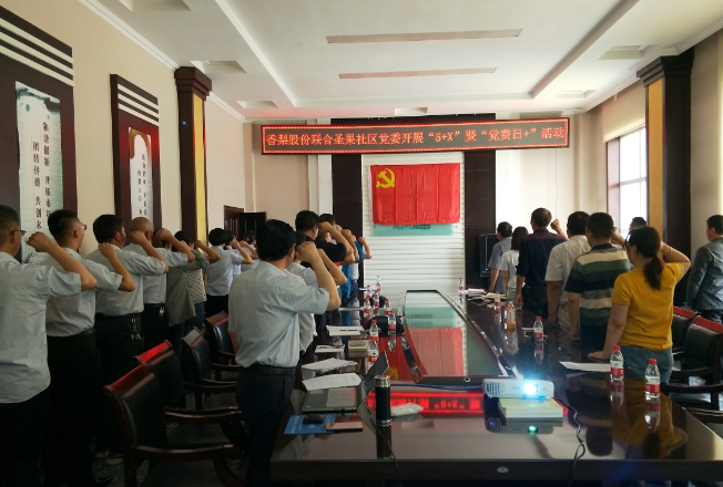 2019年5月24日,香梨股份按照與圣果社區共駐共建協議要求,聯合圣果社區黨委一起開展了 “5+X”暨“黨費日+”主題黨日活動,活動由香梨股份機關黨支部書記彭海東同志主持。香梨股份全體黨員和社區、市政工程公司黨員代表、入黨積極分子37人參加了活動。活動中重溫了入黨誓詞、誦讀黨章、繳納黨費、講主題黨課,還組織黨員開展了關于如何有效開展好黨支部工作的建言獻策交流發言。